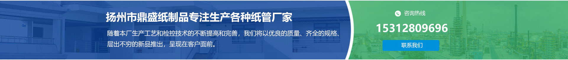 揚(yáng)州市鼎盛紙制品有限公司位于揚(yáng)州市寶應(yīng)縣曹甸工業(yè)園區(qū),地理位置優(yōu),環(huán)境宜人,交通便利。擁有國(guó)際生產(chǎn)設(shè)備與工藝,生產(chǎn)各種紙管,發(fā)展至今深得各地廠家的好評(píng)。